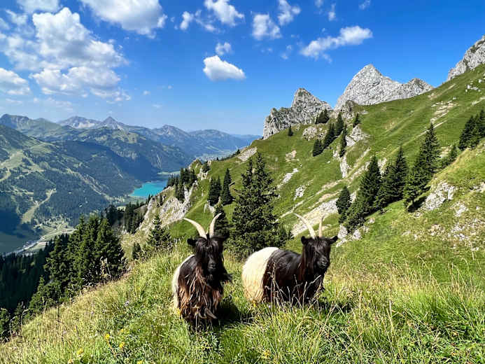 Reuttener Hahnenkamm (1.938 m, 1 h), Schneidspitze (2.009 m, 1 h), Gehrenspitze (2.163 m, 2:30 h), Lechaschauer Alm (1.670 m, 20 Minuten), Höfener Alm (1.740 m, 1:30 h), Gehrenalpe (1.640 m, 1:30 h).