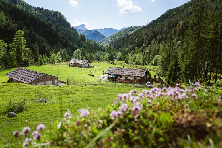 Von der Laubau wandert man entlang des Schwarzachenbaches zur Alm.
