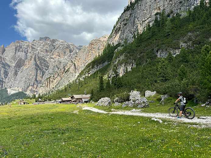 Alternativ kann man, von Norden kommend, kurz nach St. Kassian zur Capanna Alpina abzweigen um den Zustieg zu verkürzen. Von hier führt allerdings eine breite Forststraße zur Hütte.
