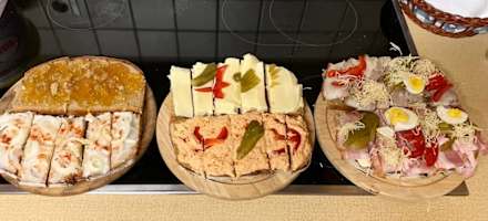 In der gemütlichen Stube mit Platz für etwa 90 Leute wärmt ein Kaminofen. Wanderer stärken sich mit Fleisch- und Grammelknödeln, Schweinsbraten und Gulaschsuppe. Vor der Hütte gibt es Tische und Bänke und einen Spielplatz mit Schaukel, Rutsche und Kletterturm. Das Bier kommt aus der Flasche, bei der Bewirtung wechseln sich die Naturfreunde-Mitglieder ab.