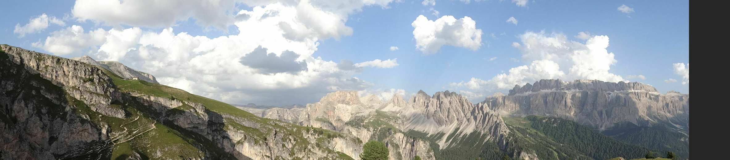 Von hier hat man einen atemberaubenden Ausblick auf die umliegende Berglandschaft der Dolomiten und sie kann von Süden aus von Wolkenstein über die sogenannte Palota und auch über die Silvesterscharte (2.280 m) erreicht werden.