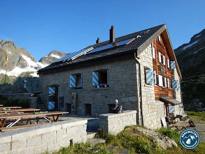 Bewartet Mitte Juni bis Mitte Oktober, über Ostern und in der Skitourensaison auf Anfrage. 69 Schlafplätze in fünf Schlafräume, jeder Platz mit Duvets und Kissen. Keine Zimmer. Hüttenschlafsack empfohlen. Übernachtungen müssen im Voraus immer reserviert werden, während der Saison nur telefonisch. Hausschuhe in allen Grössen vorhanden.