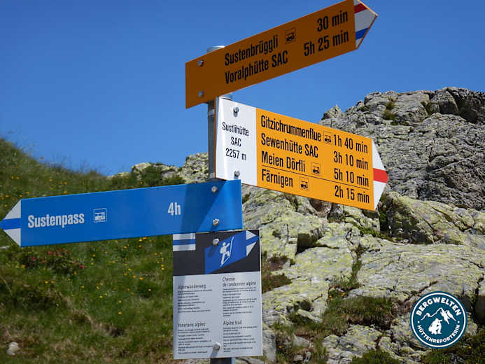 Sustlihütte - Sustenjoch – Voralphütte (ca. 5 h), Sustlihütte – Chli Griessenhorn – Voralphütte (ca. 6 - 7 h), Sustlihütte– Gorezmettlen - Sewenhütte (ca. 4 h)