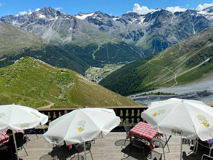 Erreicht man das Vinschgau über Meran oder den Reschenpass und Sulden (1.900 m) über Stilfserjoch und Gomagai können sich es Bergliebhaber schon auch einmal leicht machen. Das Auto wird, nach langer Anreise, entweder beim Hotel Eller oder an der Talstation des Sessellifts Langenstein abgestellt. Mit diesem Lift lässt man sich auf 2.350 m bringen. Die bis dahin trägen Beine werden dann auf dem ersten Gehabschnitt, dem Weg Nr. 10, auf Temperatur gebracht. Anschließend geht es dann flott auf Weg Nr. 4a zur Tabarettahütte. Diese Strecke zwischen Lift-Bergstation und Hütte ist in gut 1:30 h zu machen.