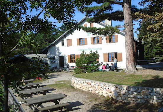 Von der Sonnenterrasse bietet sich den Besuchern bei traditioneller Hüttenkost aus selbstständiger Erzeugung ein herrlicher Ausblick auf den Schneeberg (2.076 m), den höchsten Berg des Bundeslandes Niederösterreichs. Kinder können sich ihre Zeit am hauseigenen Spielplatz vertreiben.