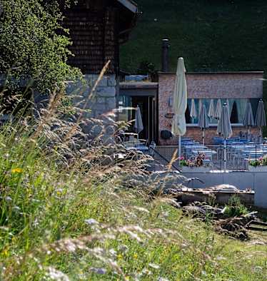 Am schnellsten erreicht man die Hütte, wenn man mit der Seilbahn bis Gamplüt fährt und von dort zur Hütte wandert.