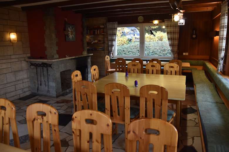 Die moderne Küche ist mit Kühlschrank, Cerankochfeld, Backofen, einem kleinem Gaskochfeld und einer Spülmaschine sehr gut ausgestattet. Im Souterrain befinden sich zwei Duschen mit Münzbetrieb, 50 ct Münzen erforderlich. Die Hütte verfügt über 4 Zimmer mit je 8 Betten und 1 Zimmer mit 4 Betten, kein Matratzenlager.
