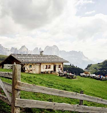 Was dem Hüttenteam besonders wichtig ist: sämtliche Produkte und Zutaten müssen aus der Region stammen und frisch sein, was dank der Materialseilbahn kein großes Problem ist. So kredenzt es himmlisch gute Knödel und auf dem Holzofen zubereitete Polenta, Suppen und kalte Gerichte sowie die klassischen Süßspeisen Kaiserschmarren und Apfelstrudel, aber auch Karottenkuchen und Linzertorte.