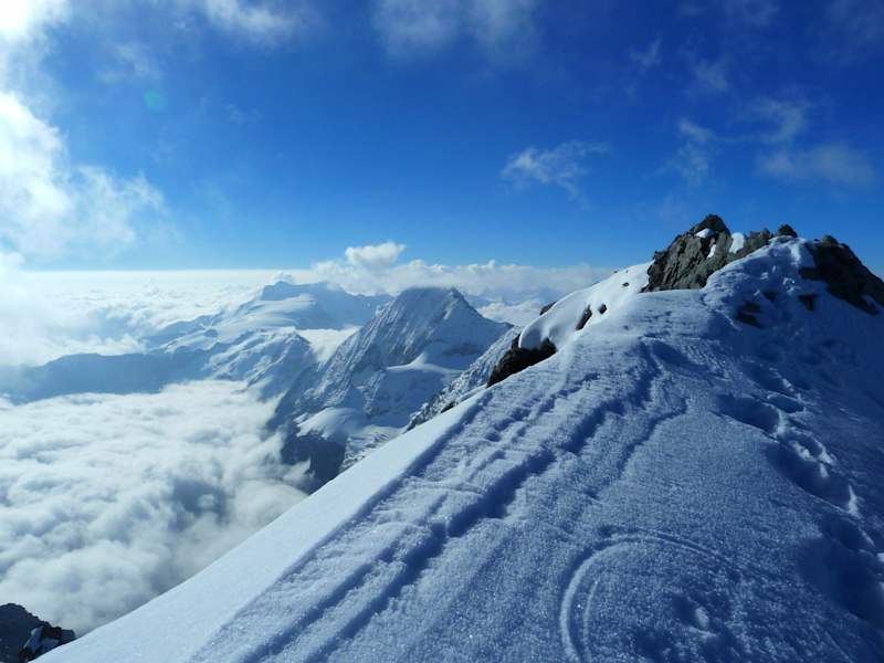 Den Ortler nicht über den Normalweg, sondern über den ausgesetzten Hintergrat zu besteigen, ist für viele ein langgehegter Traum. Die Tour besticht durch ihre landschaftliche Schönheit mitten im Nationalpark Stilfser Joch mit fantastischen Blicken auf die benachbarte Königsspitze und die Kombination aus Fels und Eis, die viel alpine Erfahrung voraussetzt. Idealerweise bucht man für diese Unternehmung einen Bergführer.