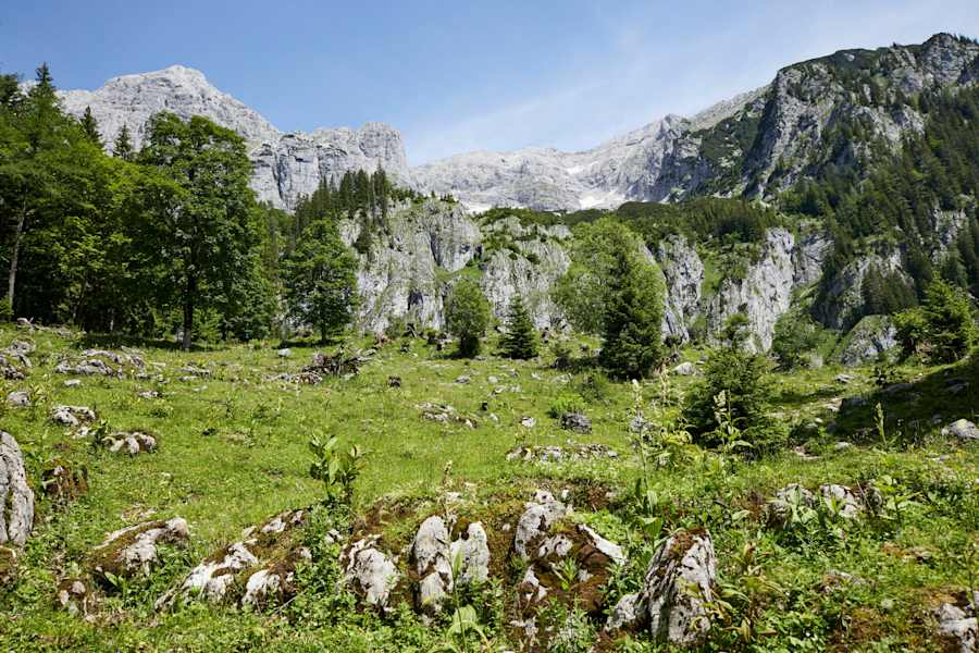 Der Nationalpark Berchtesgaden erstreckt sich über den gesamten südlichen Zipfel des Landkreises Berchtesgadener Land und schließt den weltbekannten Königssee, das Watzmann- und Hochkaltermasiv sowie das wildromantische Wimbachgries ein. Auf Österreichischer Seite schließt das Landschaftsschutzgebiet Salzburger Kalkhochalpen mit dem Steinernen Meer an. Der strenge Schutzstatus ermöglicht es der Natur, sich völlig frei von menschlichen Eingriffen in ihrer eigenen Dynamik zu entfalten.