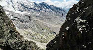 Wer den Nervenkitzel sucht, ist auf den Klettersteigen des Saastals gut aufgehoben: Hier befindet sich die höchstgelegene Via Ferrata der Westalpen auf über 3.000 Metern. Zudem warten die Eisenwege mit ausgesetzten Graten, über 100 Meter langen Seilbrücken und spektakulären Tief- und Fernblicken auf. Aber auch Klettersteig-Neulinge können sich auf einfacheren Steigen an den Sport herantasten.