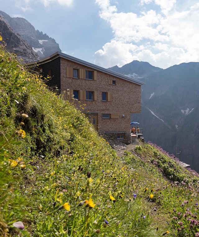 Am Fuße der Mädelegabel und der Trettachspitze klebt wie ein Adlerhorst eine Schutzhütte des Deutschen Alpenvereins (DAV) unterhalb der Felsen, wie eine Bastion vor der Österreichischen Grenze, ein Stützpunkt für Wanderer und Kletterer in den Allgäuer Alpen.
