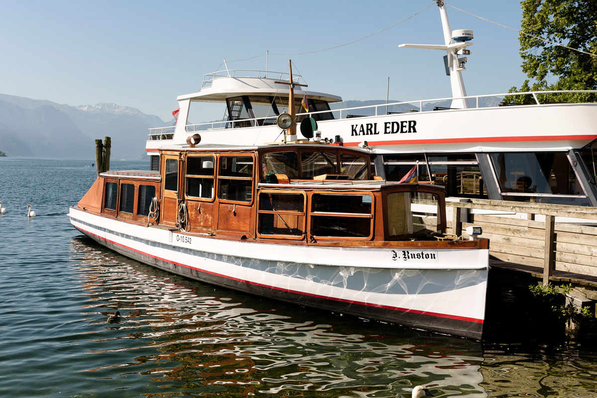 Wer den Traunstein von möglichst vielen Blickwinkeln aus betrachten möchte, ohne sich zu bewegen, macht das am besten mit der Flotte der Traunseeschifffahrt, die unter anderem den historischen Raddampfer „Gisela“ betreibt und sieben Anlegestellen anläuft. Wer lieber selbst am Steuerrad sitzt, ist bei den E-Boot-Verleihern an den Promenaden von Gmunden und Altmünster, am Ortsplatz von Traunkirchen und im Ebenseer Ortsteil Rindbach gut aufgehoben.
