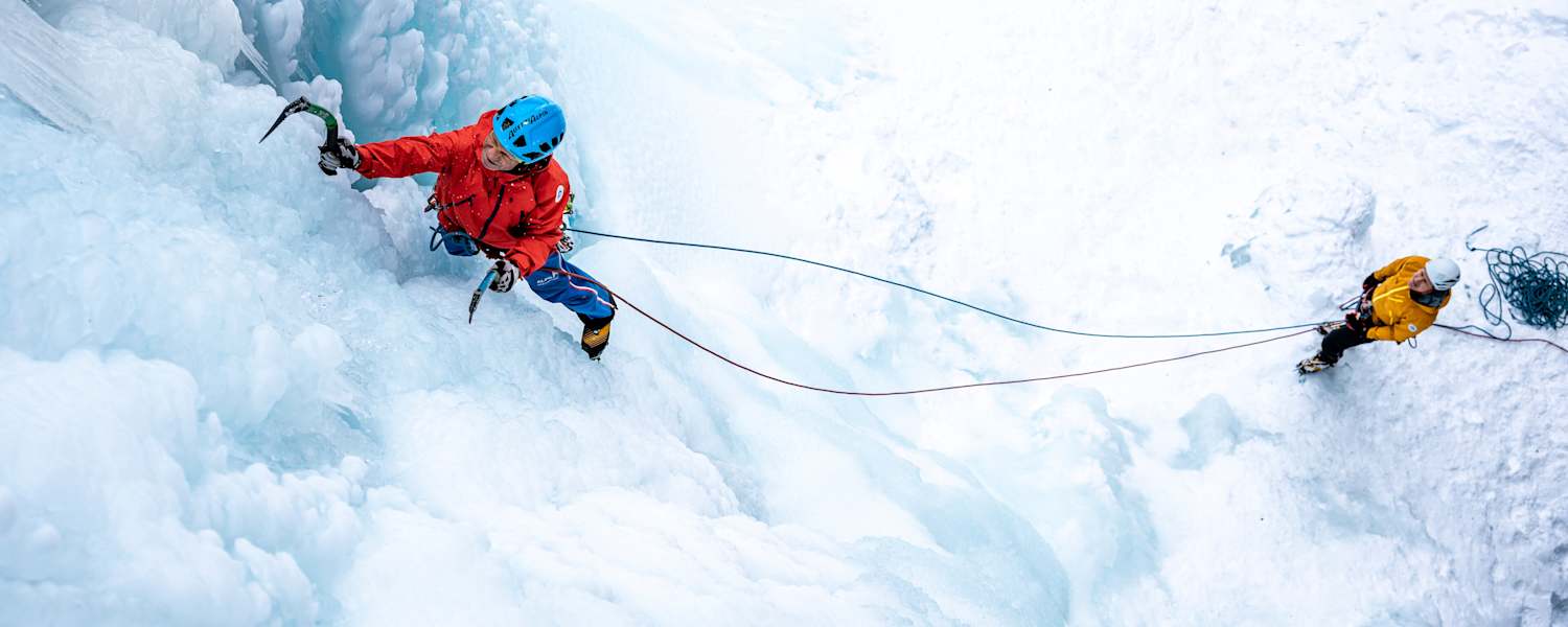 Klettern an gefrorenen Wasserfällen ist kein alltägliches Outdoor-Abenteuer – wer sich daran wagen möchte, benötigt ein ganz spezielles Equipment.