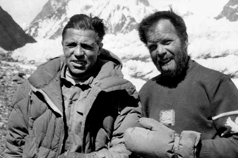 Das Wetter war gut an diesem Tag. Der Himmel stahlblau, fast kein Wind. Mühsam kämpften sich Lacedelli und Compagnoni durch den Schnee und kletterten über die Felsen weiter nach oben. Schon gegen 16 Uhr waren alle sechs Flaschen leer, also kein zusätzlicher Sauerstoff mehr für die beiden vorhanden. Sie gingen trotzdem weiter. Im Nachbericht von 1954 heißt es dazu: