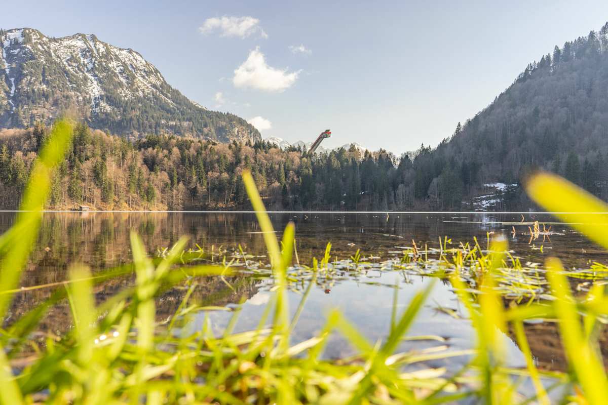 Wanderung ins Stillachtal: Immer den Allgäuer Alpenhauptkamm vor Augen, wandert man im Stillachtal etwa zur berühmten Heini-Klopfer-Skiflugschanze. Von der Aussichtsplattform am höchsten Punkt der Schanze genießt man einen tollen Blick auf den idyllischen Freibergsee und hinein ins Stillachtal, in das man in Folge weiter bis Birgsau wandert. Von hier kann man noch bis nach Einödsbach aufsteigen, die südlichste bewohnte Siedlung Deutschlands.