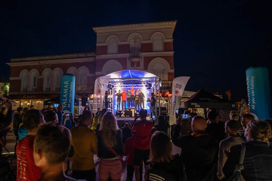 Das bedeutet aber auch: Keine Touristenmassen, die sich im Hochsommer durch die Küstenstädte Kroatiens drängen. Jetzt gehört der Badeort ganz den Einheimischen, die in der historischen Altstadt durch die engen Gassen flanieren – und den Radlern aus ganz Europa. Wie bunte Fliegen umschwirren sie auf ihren Rennmaschinen das Zentrum oder schieben selbige über bis zu 2.000 Jahre altes Kopfsteinpflaster Richtung Hafen, wo der große Speichenzirkus mit Verkaufsständen und einer Expo Zone seine Zelte aufgeschlagen hat. Hier erfolgt auch die bestens durchgetaktete Registrierung zum Rennen – im Nu hält man seine Starternummern, das offizielle Trikot (in der Startgebühr inbegriffen) und ein gut gefülltes Starter-Bag in der Hand.