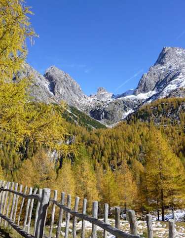 Direkt von der Dolomitenhütte (1.620 m) geht es anfangs ziemlich eben über einen breiten Forstweg (Egerländerweg, Nr. 12), immer in Richtung Talschluss. Entweder folgt man dem Forstweg weiter über Kehren aufwärts oder kürzt über einen schmalen, aber einfachen Steig ab. Einfach weiter den Schildern zur Karlsbader Hütte (2.260 m) folgen.