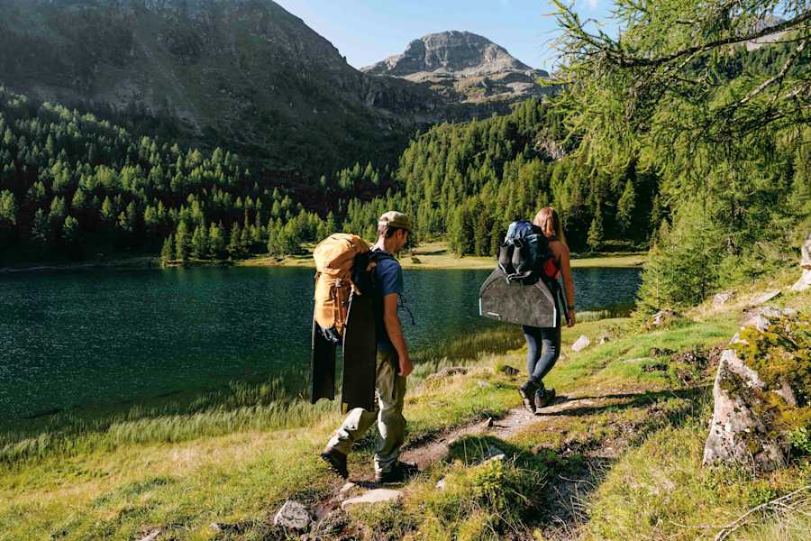 Abtauchen im Bergsee – das klingt nach einem Traum, den sich vermutlich nicht viele erfüllen können. Bergwelten-Autor Klaus Haselböck hat aber zwei gefunden, die dafür die richtige Ausrüstung mitbringen: die Apnoe-Tauer Christine Gerstorfer und Daniel Bier. Mit Rucksack, Neoprenanzug und Flossen wandern sie zum fantastisch gelegenen Duisizkarsee und tauchen leise in das sanfte Grün des Gebirgssees ein. Prädikat „unbedingt nachlesen“ im aktuellen Bergwelten Magazin (August/September 2022).