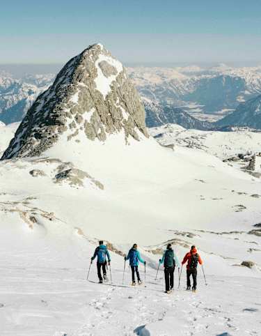 In drei Tagen auf Schneeschuhen über den Dachstein: Eine gute Kondition braucht man schon, sonst aber muss man nur noch anschnallen und losstapfen.