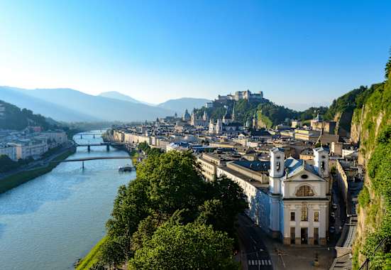 Die Seilbahn ist die älteste im Original erhaltene Großkabinenseilbahn der Welt. Tatsächlich ist es, als würde man in eine alpine Zeitmaschine steigen, wenn man in Bad Reichenhall eine der zwei kleinen rot-weißen Metallgondeln aus dem Jahr 1928 betritt. Erst recht, wenn man oben im Predigtstuhl-Restaurant wieder aussteigt: Grammophon in der Ecke, Perserteppiche auf dem Boden, Polsterstühle wie aus einem Wes-Anderson-Film – garniert mit einem Ausblick über das flache Alpen vorland auf der einen und die Hochalpen auf der anderen Seite.