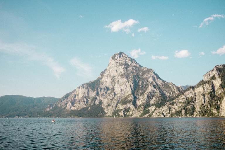 Wer den Traunstein von möglichst vielen Blickwinkeln aus betrachten möchte, ohne sich zu bewegen, macht das am besten mit der Flotte der Traunseeschifffahrt, die unter anderem den historischen Raddampfer „Gisela“ betreibt und sieben Anlegestellen anläuft. Wer lieber selbst am Steuerrad sitzt, ist bei den E-Boot-Verleihern an den Promenaden von Gmunden und Altmünster, am Ortsplatz von Traunkirchen und im Ebenseer Ortsteil Rindbach gut aufgehoben.