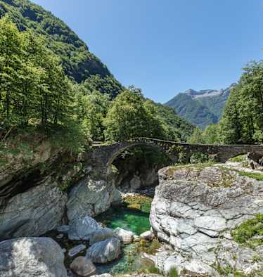 Das 25 km lange Verzascatal liegt am nördlichen Ende des Lago Maggiore im Tessin. Es ist bekannt für den smaragdgrünen Fluss, die Verzasca, die Römerbrücke Ponte dei Salti und die Staumauer des Lago di Vogorno, von der Pierce Brosnan für die James-Bond-Verfilmung „Golden Eyes“ 220 m in die Tiefe gesprungen ist. Das Tal hat aber noch weit mehr zu bieten.
