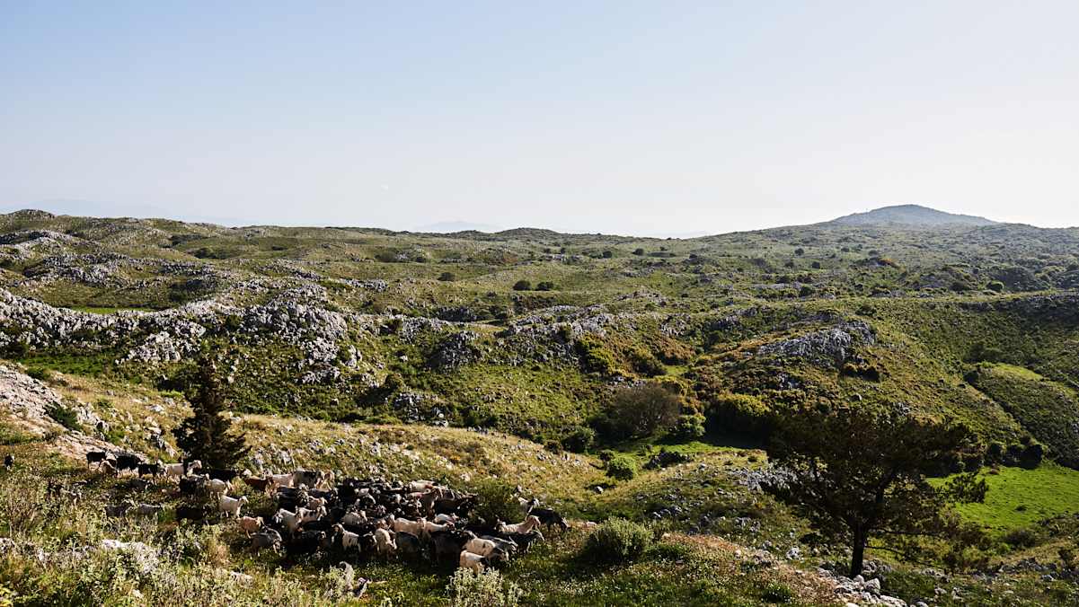 Stärkung für den Gipfelsturm: Der Arbeitsplatz von Bergläufer Yannis Salvanos heißt nicht umsonst Agnadio – Fernblick. Die Aussicht von der Terrasse der Taverne ist geradezu grandios, die Küche sehr authentisch.