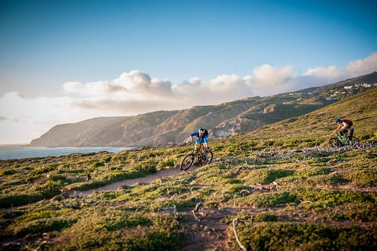Die Zeit verfliegt und nach sieben Stunden und einigen Abfahrten haben wir ordentlich Höhenmeter in den Beinen. Doch das Beste kommt zum Schluss und nennt sich „Donkey Trail“: ein scheinbar endloser Pfad im Küstengebiet, der uns dann doch noch – gerade rechtzeitig zum Sonnenuntergang – an einem einsamen Strand ausspuckt. Wir sind überwältigt. Und haben einen Bärenhunger.