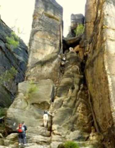 Klettersteige · Sachsen Durch die Häntzschelstiege (B) in den Affensteinen in der Sächsischen Schweiz