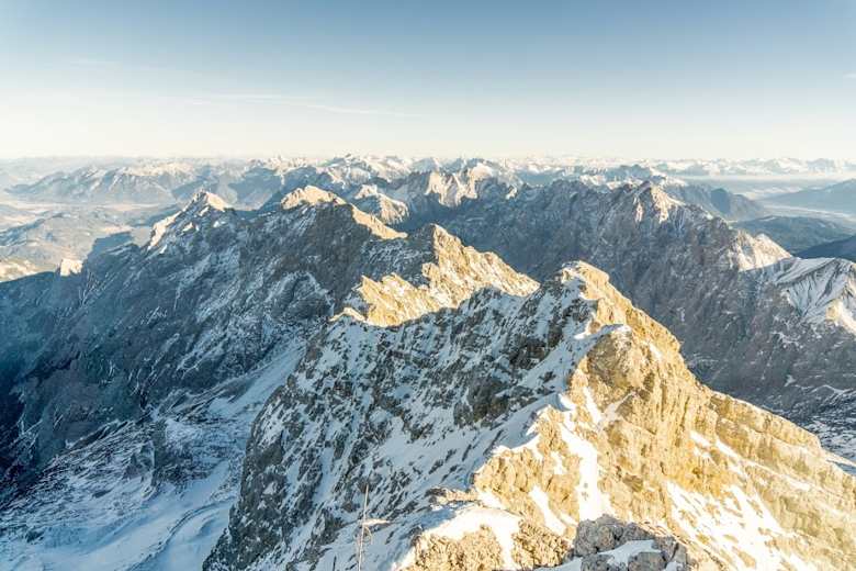 Bergtour vom Eibsee auf den Jubiläumsgrat. Als Traum vieler Bergsteiger thront er schon von weitem sichtbar über Garmisch Partenkirchen. Der Grat von der Zugspitze zur Alpspitze ist lang und teilweise ausgesetzt. Im Sommer schon eine lange Tour, wird der Jubiläumsgrat im Winter zu einem anspruchsvollen Ziel, das sich vor diversen Westalpentouren nicht verstecken braucht. Lohnende Bergtour im Wettersteingebirge in Bayern.