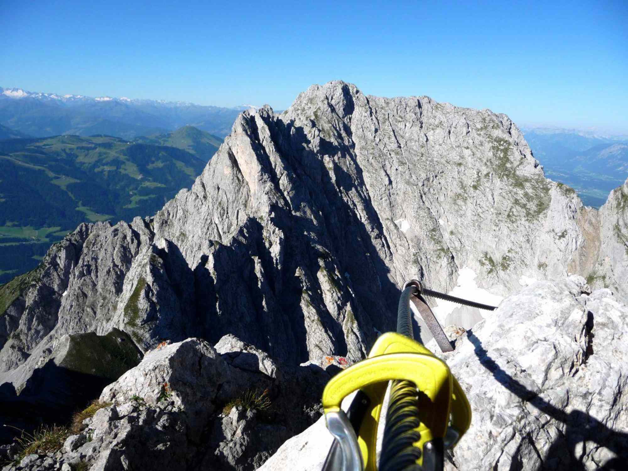 Schwierige Bergtour auf die Ellmauer Halt (2.315 m), dem höchsten Gipfel im Wilden Kaiser. Der streckenweise ausgesetzte Klettersteig bis zum Gipfel ist nicht besonders schwierig. Trotzdem sind dafür Klettersteigerfahrung, einwandfreie Kondition, Trittsicherheit und auch Schwindelfreiheit erforderlich.