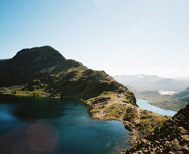 Durch die Seenlandschaft: Von Gjendesheim führt die abwechslungsreiche, erste Etappe der Jotunheimen-Rundwanderung bei den beiden Seen Bessvatnet und Russvatnet vorbei. Je nach Jahreszeit glitzern sie dunkelblau oder türkis. Anschließend gelangt man über ein Joch hinunter zur Glitterheim-Hütte, die in einem wunderschönen Hochtal liegt.