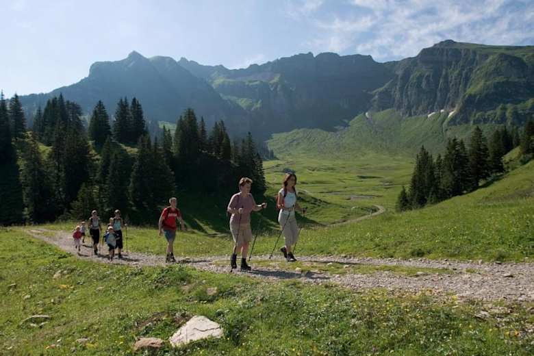 Ausgangspunkt der Tour ist die Bergstation Rossstelle. Diese erreicht man mit der einer Fahrt der Mellaubahn. Von der Bergstation geht es über den Wanderweg Richtung Kanisalpe. Man überquert den Bach auf der Alpe Kanis und geht dann anschließend weiter in Richtung der Alphütte.