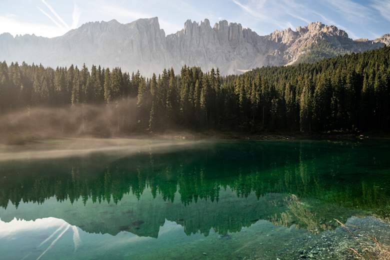 Auf der Brennerautobahn A22 bis Bozen Nord/Eggental. Hier im Kreisverkehr links in das Eggental einfahren und der Dolomitenstraße bis Birchabruck folgen. Wiederum links abbiegen nach Karersee.