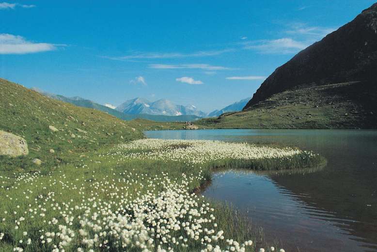 wie Aufstieg möglich. Wir empfehlen jedoch die Variante "Langtalseen" - drei zauberhafte Seen, an den Ufern mit üppigem Wollgras bewachsen und in einzigartiger Lage in einsamen Karen der Schobergruppe.