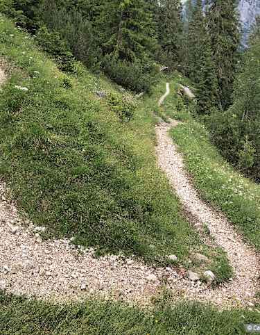 Vom Parkplatz dem Fahrweg entlang des Speichersees bis zur Osnabrücker Hütte.