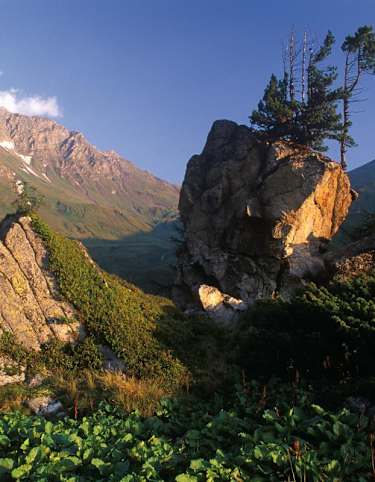 Östlich des Grates weglos (spärlich markiert) über steiles Blockgelände bis zum Verbindungsgrat zwischen Südlichem (2.924 m) und Mittlerem (2.932 m) Schwarzhorn. Das Gipfelkreuz am höheren der beiden Gipfel erreichen wir in leichter Kletterei am blockigen Grat.