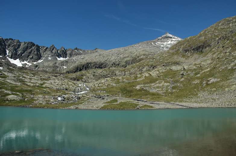 Von hier in Richtung Westen über den Weg Nr. 916/918. Nach wenigen Minuten überqueren wir den Zufluß des Gradensees nach links in südwestlicher Richtung. Dann recht steil neben dem Wasserfall in Serpentinen aufwärts. Auf gletschergeschliffenen Platten geht es weiter bis wir kurz vor dem Eissee den Markierungen und steinernen Mandln über den Rücken in Richtung Gipfel folgen.