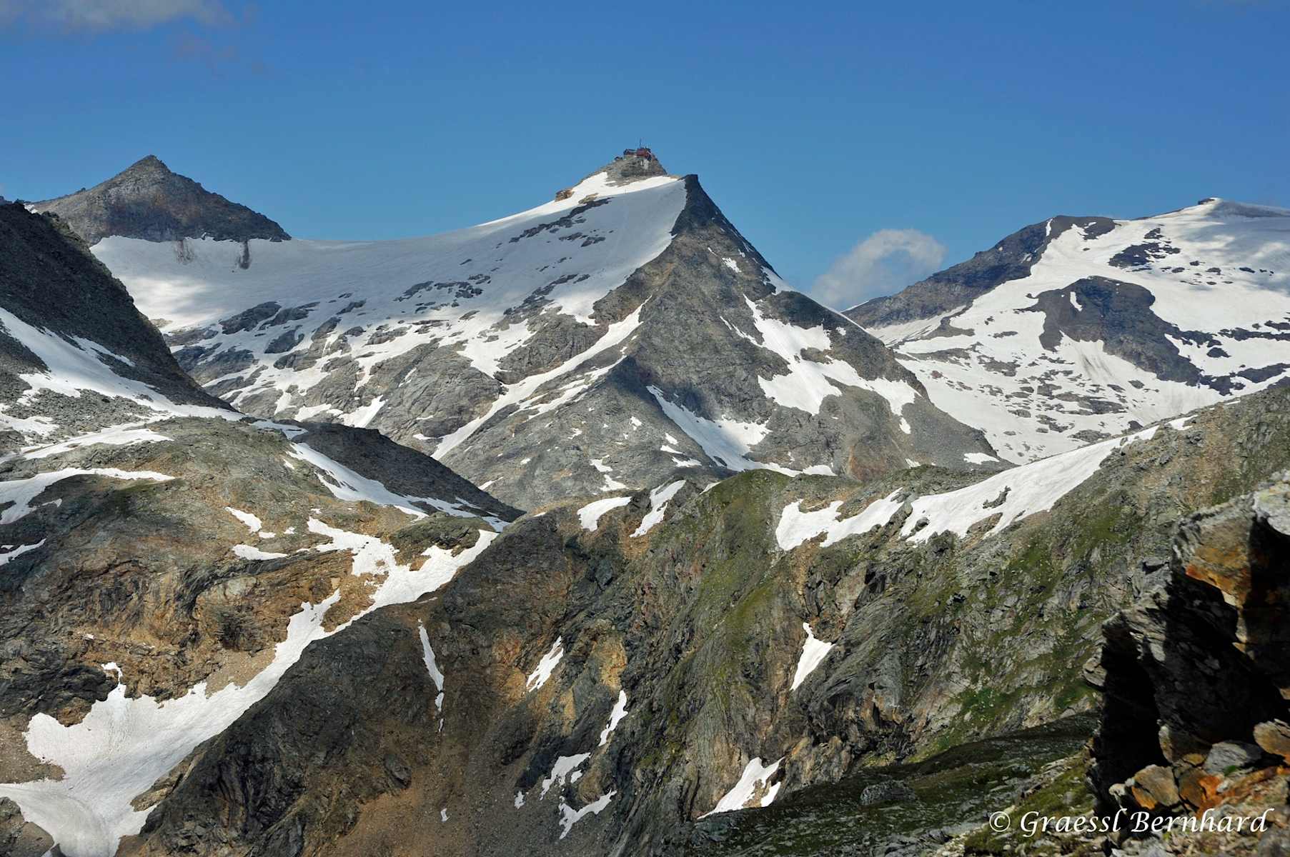 Der Blick auf den Hohen Sonnblick (3.106 m) ist einmalig. Die hochalpine Natur ist geprägt vom ewigen Eis. Foto: Graessl Bernhard, CC BY-ND, Hohe Tauern - die Nationalpark-Region in Kärnten Tourismus GmbH