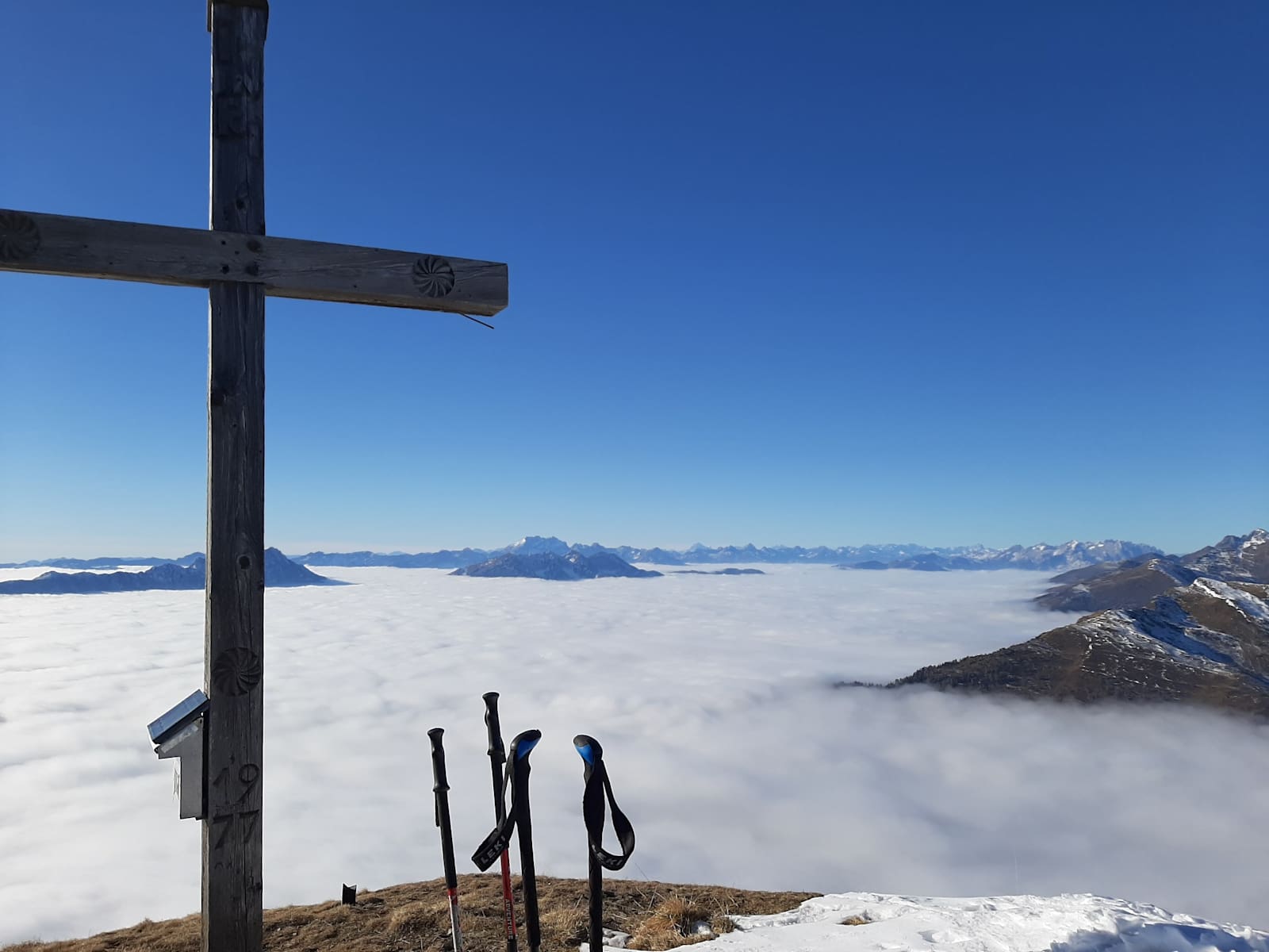 Das Drautal bzw. das Nebelmeer zu Füßen - Gipfelkreuz Stagor Foto: Tanja Weiß-Thalmann, Hohe Tauern - die Nationalpark-Region in Kärnten Tourismus GmbH