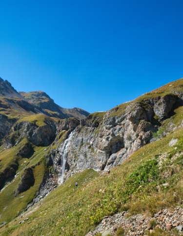 Aussichtsreiche und lange Bergwanderung im schweizerischen Graubünden: Ausgehend von Sent führt die Bergtour durch einsame alpine Landschaft, über Geröllebenen und mitten durch die Heimat der Steinböcke zur Heidelberger Hütte auf 2.264 m.