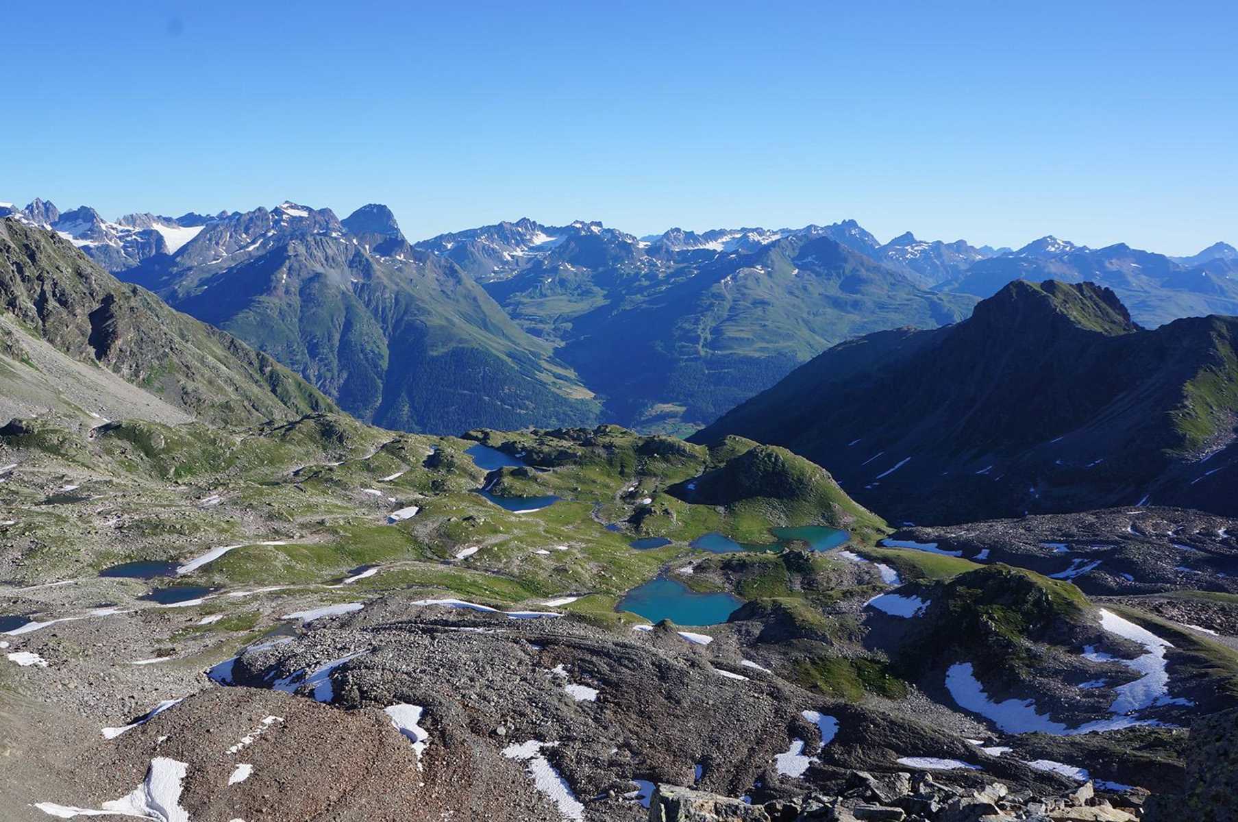 Satte 23 Seelein reihen sich auf der Seeplatte von Macun wie auf einer Perlenkette aneinander. Seit dem Jahr 2000 bereichert dieses Hochplateau zwischen Zernez und Lavin den Schweizer Nationalpark. Neben diesem Naturschauspiel beeindruckt diese Wanderungen mit einer fantastischen Aussicht vom Munt Basegia.