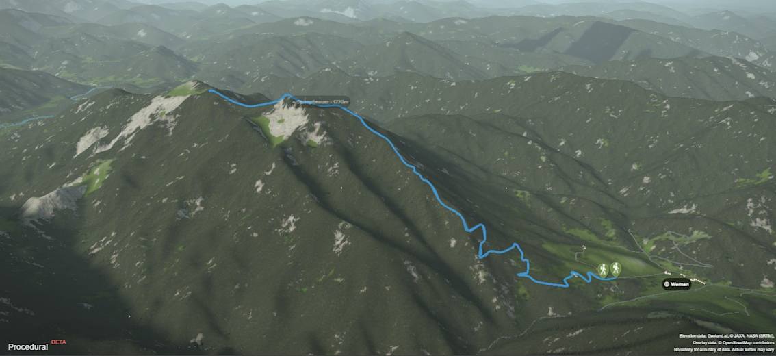 Vom Wanderparkplatz in Wenten der Asphaltstraße bergan folgen, vorbei am Bauernhaus Wenten, is man auf der Forststraße einen Schranken erreicht. Im Wald weiter sanft bergauf. Auf etwa 970 m nimmt man den schön angelegten Hugo-Zettel-Steig (Weg Nr. 208) durch den Wald.