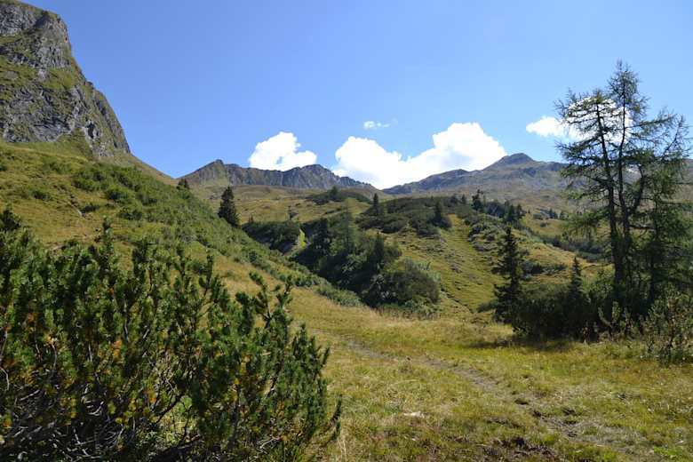 Nach einer verdienten Rast beginnt man über den AV-Weg Nr. 724 bzw. 51 den Abstieg zu den Kreealmen (Kreehütte und Bichlhütte) auf ca. 1.500 m. Beide Hütten bieten ein überaus excellentes kulinarisches Angebot aus eigener Produktion, das den großen Hunger und Durst stillen wird. Gut gestärkt tritt man den letzten Teil der Bergtour an. Zum Teil über einen Forstweg und zum Teil über den alten, markierten Kreealmweg geht es dem Ziel, dem Parkplatz Stockham beim Talmuseum und Nationalparkzentrum entgegen.