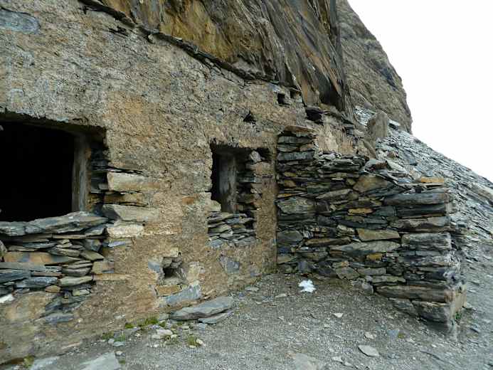 Hat man sich auf der Salmhütte gut gestärkt, kann man den weiteren Anstieg in Angriff nehmen: Von der Hütte wandert man aufwärts zum Kriegerdenkmal und über den schottrigen Hang unterhalb des Schwerteckes. Hier befindet sich die „Alte Salmhütte“, die direkt in den Felsen gehauen wurden.