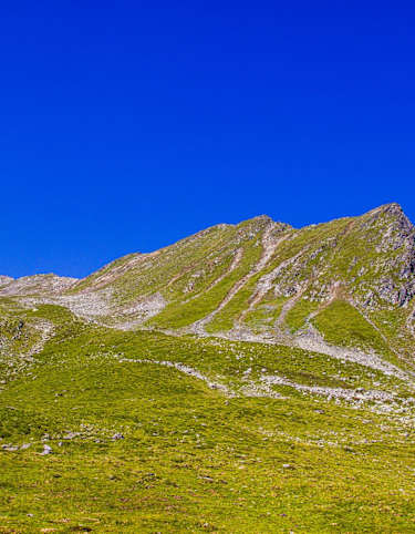 Dort den Abzweig Richtung Osten, Pfeishütte, nehmen und stetig auf dem schmalen Pfad 221 über die Stempelreisen zum Fuße des Stempeljoches. Jetzt noch einmal Kraft tanken und direkt dem nicht ganz einfachen, schmalen Bergpfad in Serpentinen auf das Stempeljoch 2.215 m folgen.