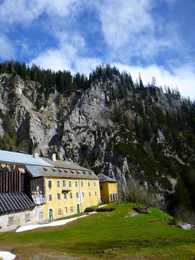 Um den Zustieg etwas zu verkürzen, gibt es die Möglichkeit, sich mit dem Taxi ins für den Öffentlichen Verkehr gesperrte Halltal hinein bringen zu lassen. Man erreicht dadurch ca. 1:30 h Zeitersparnis.