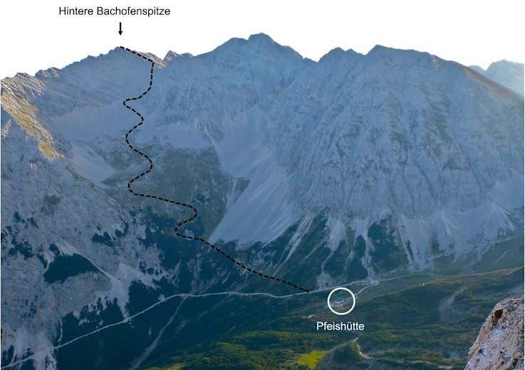 Die 2.668 m hohe Hintere Bachofenspitze gehört sicherlich zu den Höhepunkten im Tourengebiet der Pfeishütte im Karwendel. Sie ist die höchste und nördlichste Erhebung auf Thaurer Gemeindegebiet und trennt die Gleirschkette im Westen von der Halltalkette im Osten. Die schwere Bergtour weist Kletterpassagen auf und bietet zudem eine tolle Aussicht ins nördliche Karwendel. Grandios ist auch die 700 m abfallende Nordwand ins Hinterautal.