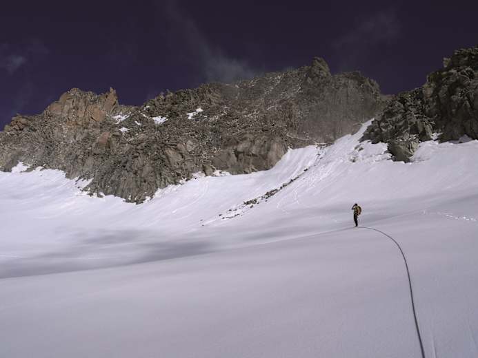 Je nach Firnverhältnissen ist die Tour als WS+ oder ZS- einzustufen. Aufstieg: 4-5 h, Abstieg: 2-3 h.